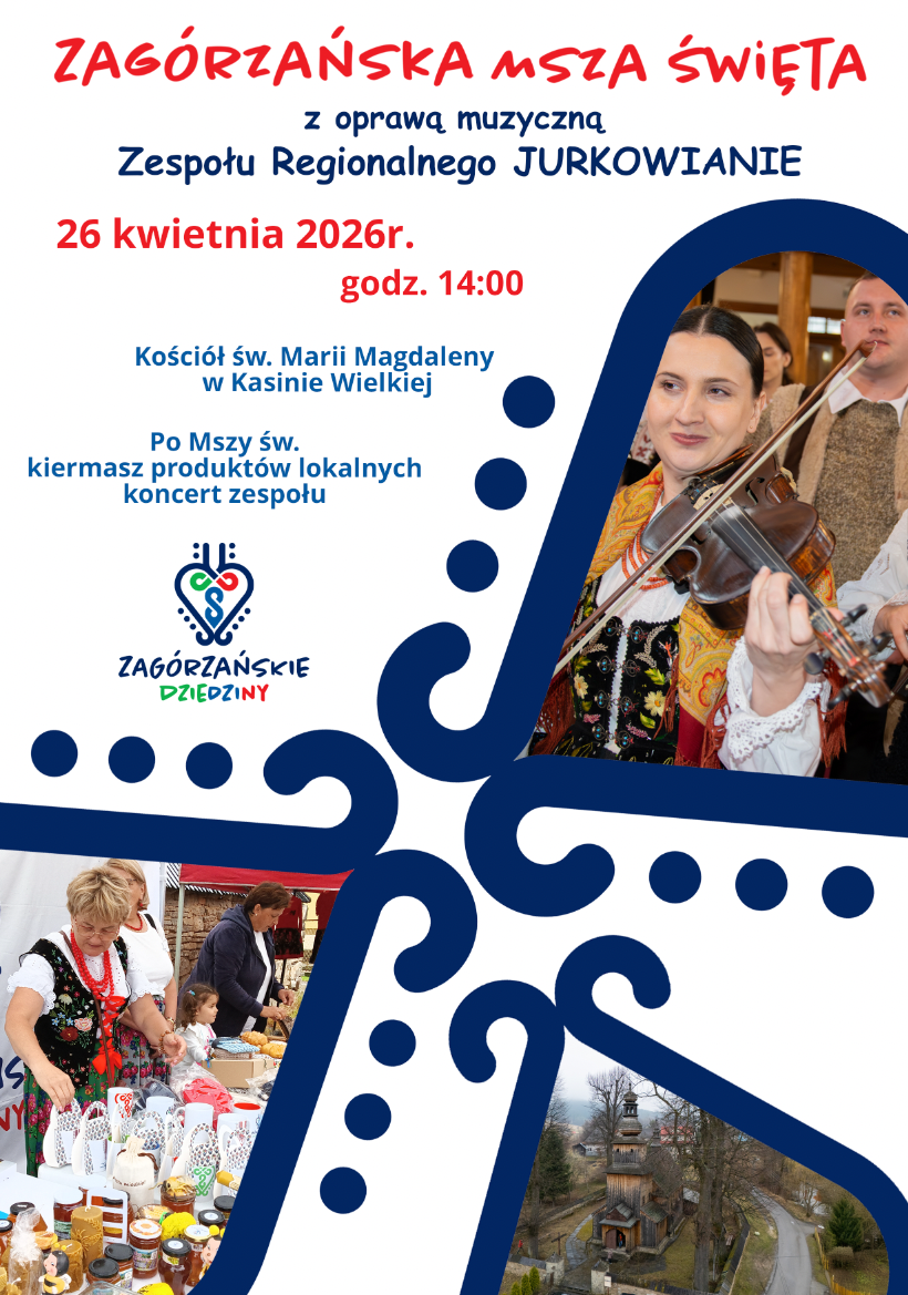 26 kwietnia 2026 r., o godz. 14:00, w kościele p.w. św. Marii Magdaleny w Kasinie Wielkiej, na Szlaku Architektury Drewnianej w Małopolsce, odprawiona zostanie Zagórzańska Msza św.